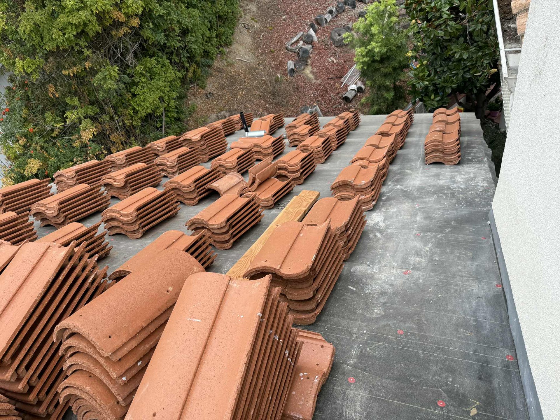 Roofs covered with tiles, which are individual pieces used to protect a home from the elements. They come in different forms to create specific designs and offer varying levels of durability and weather resistance.